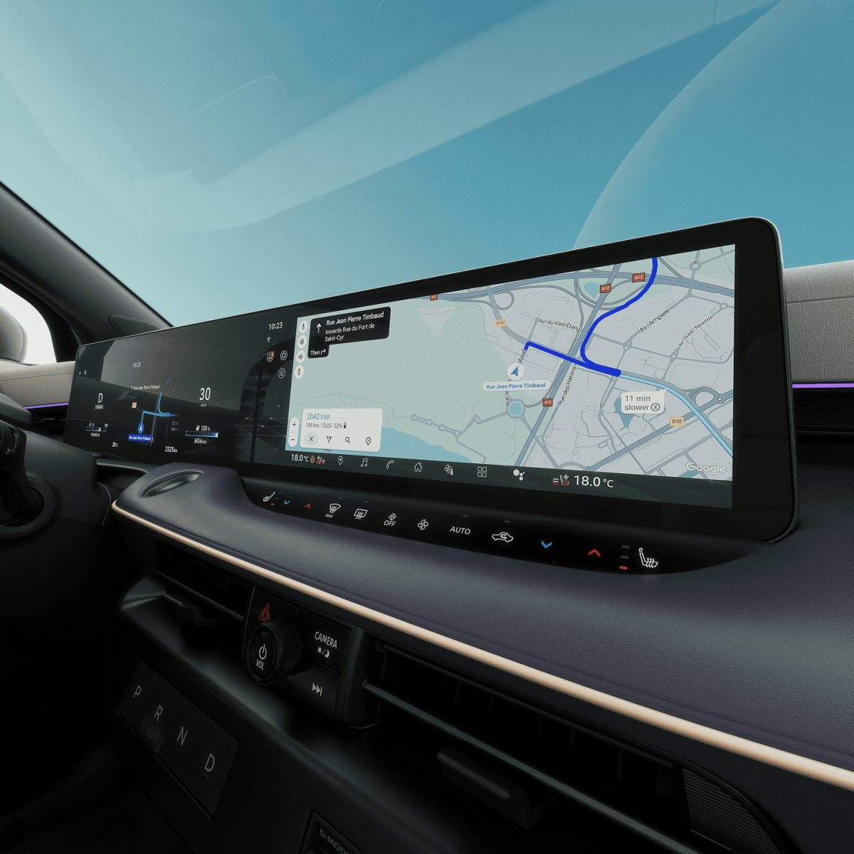 A beépített Google rendszerrel ellátott dupla kijelző lehetővé teszi, hogy a Nissan LEAF utasteréből is folyamatos kapcsolatban maradjon a külvilággal, és az Over-The-Air frissítéseknek köszönhetően mindig naprakész marad. ⁶